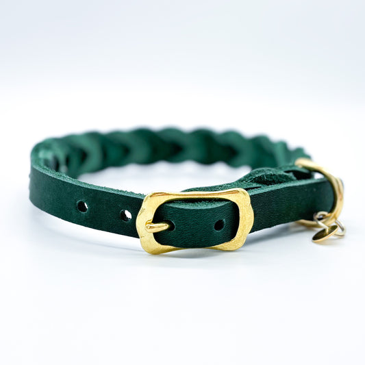 Fettlederhalsband geflochten Dunkelgrün