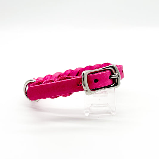 Fettlederhalsband geflochten Pink