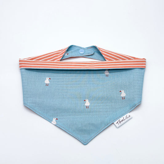 Halstuch wendbar Möwen/Streifen Blau Orange