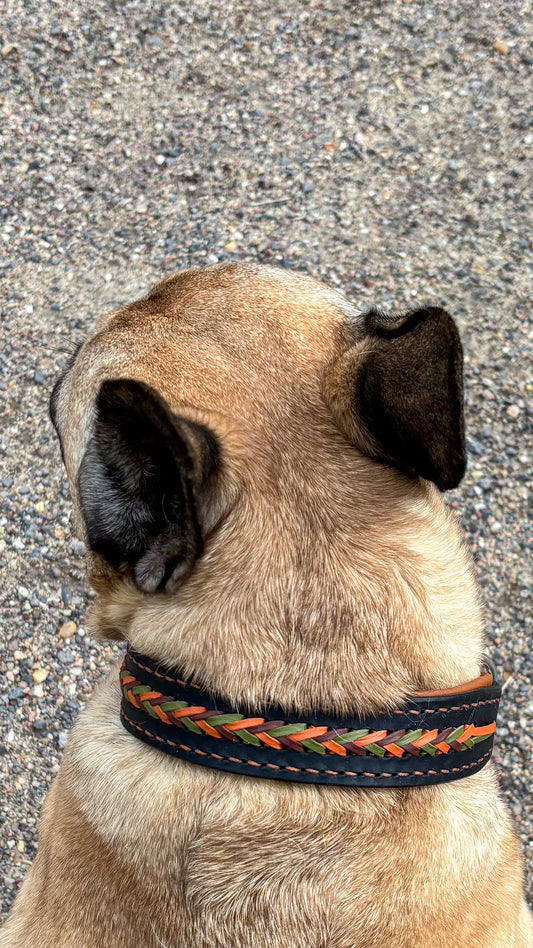 Lederhalsband mit Aufflechtung Naturtöne