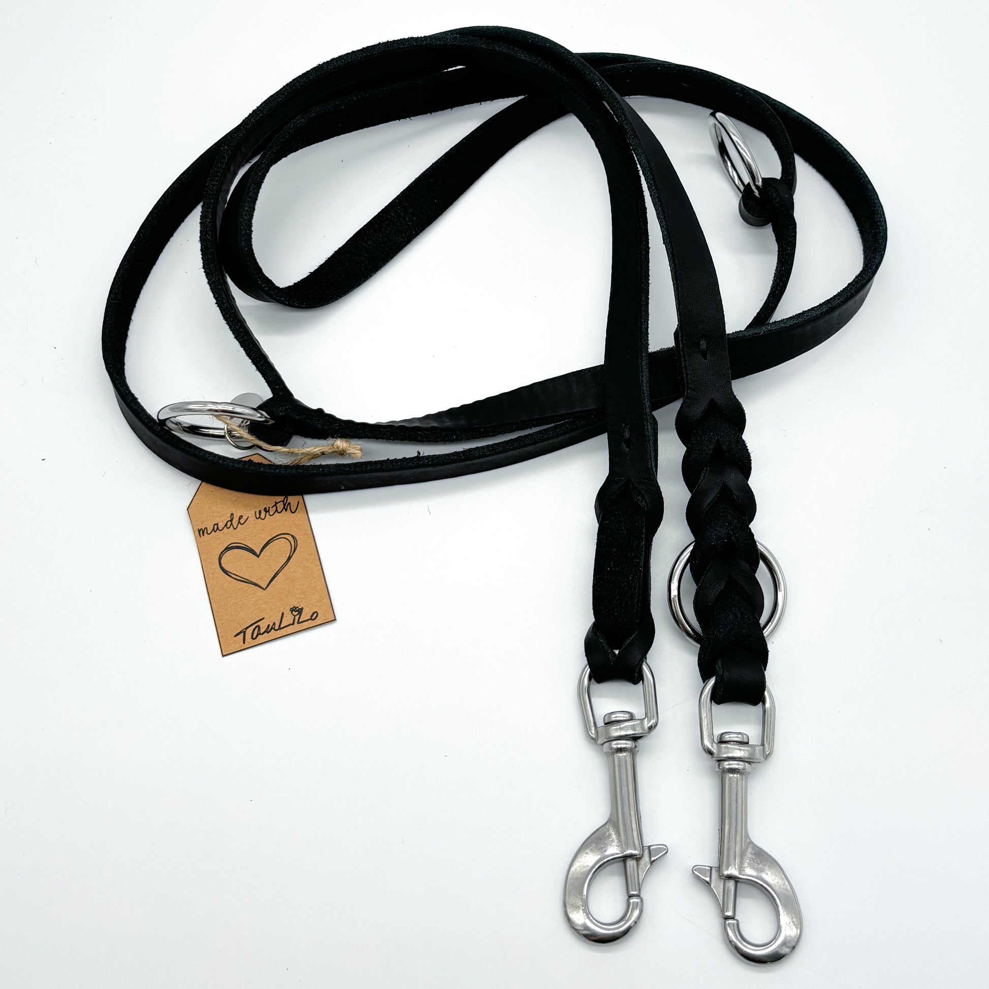 Diese hochwertige Fettlederleine in elegantem Schwarz vereint Funktionalität, Komfort und Stil. Sie ist dreifach verstellbar und bietet somit maximale Flexibilität für unterschiedliche Bedürfnisse - ob beim Training, Spaziergang oder in der Freizeit.