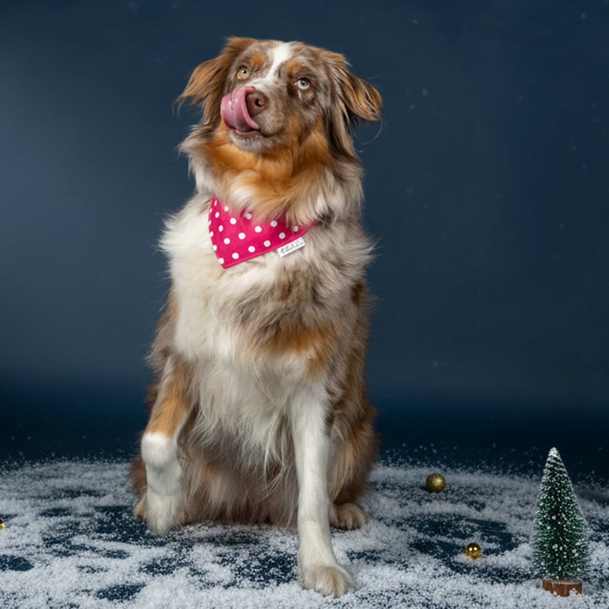- Das Halstuch sollte locker sitzen und die Bewegungsfreiheit sowie die Atmung deines Hundes nicht einschränken.